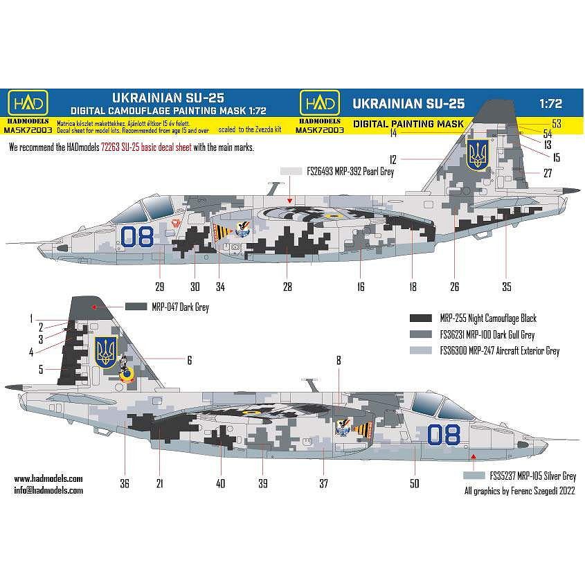 MASK72003 1/72 スホーイ Su-25 フロッグフット 「ウクライナ デジタル迷彩」 塗装マスクシール (ズベズダ用)