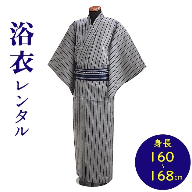 【浴衣 メンズ レンタル】ゆかたレンタル 3点セット☆浴衣・帯・下駄☆nt-my143 グレー色/縞