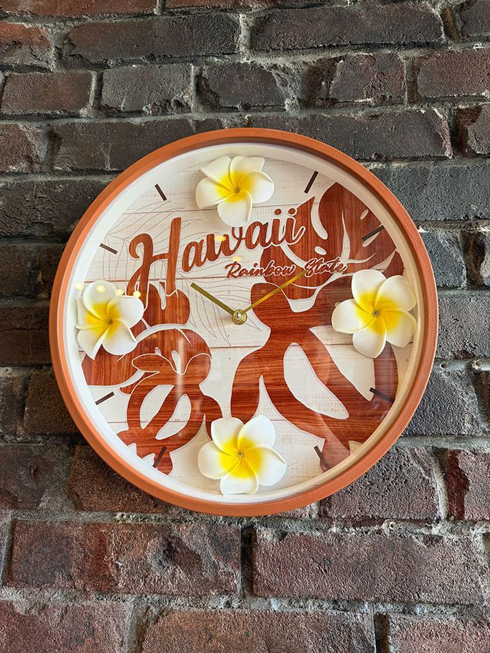 ハワイアン プルメリア レトロ ウォールクロック (ハイビスカス) 壁掛け時計