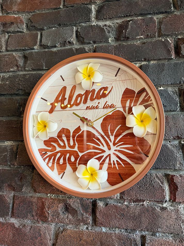 ハワイアン プルメリア レトロ ウォールクロック (ホヌ) 壁掛け時計