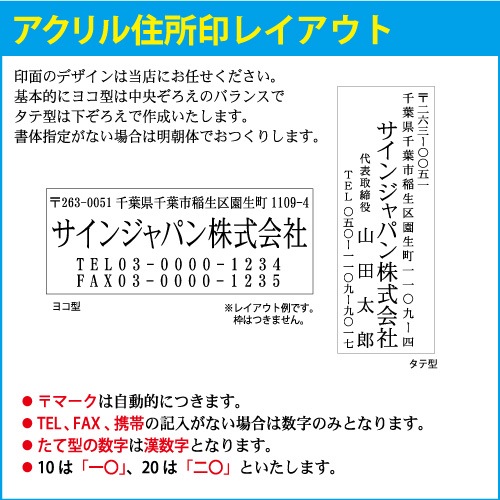 【公式】ゴム印「アクリル台住所印」横63m×縦16.5mm~25mm( はんこ / 会社印 / 横判/ 住所印 / 社判 / 印鑑...