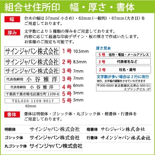 組合せゴム印「アドレスマークⅡ印」62mm幅 4枚【ゴム印・会社印・住所印・社判・親子印・分割印・印鑑・はんこ】高さは当店にお...