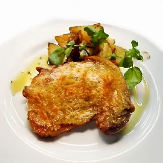 仔牛のカツレツ ミラノ風 ポテトとローズマリーの ロースト添え