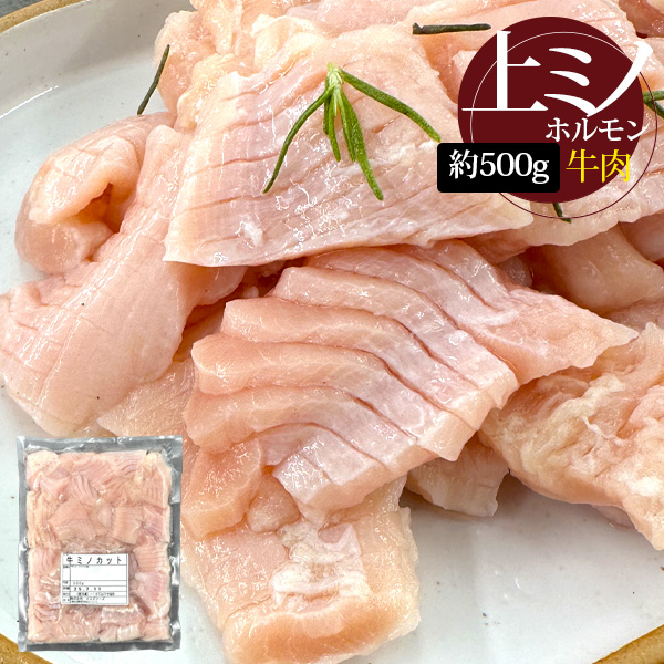 [牛肉] 上ミノ カット スライス / 約500g 肉厚で歯ごたえ感最高 ホルモン たん白 焼肉 (冷凍)