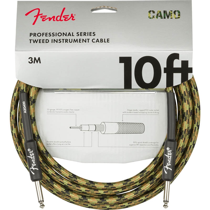 Fender Professional Series Instrument Cable, Woodland Camo 10ft(約...