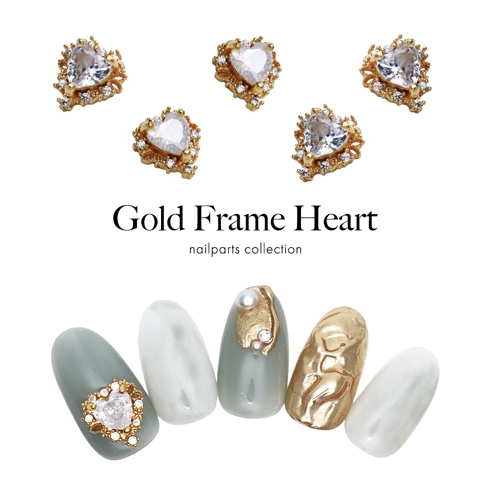 【ネコポス送料無料】ネイルパーツ ジルコニア製 ゴールドフレームハートストーンパーツ [クリスタル/クラックホワイト] 2個入り
