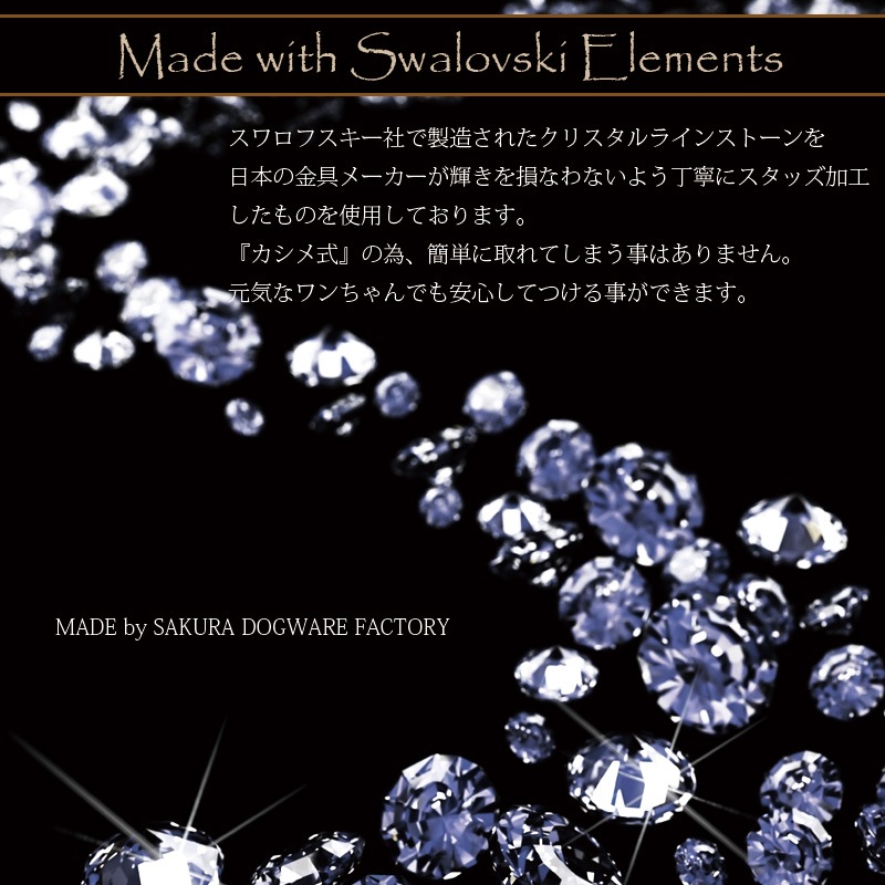 サクラ犬具製作所 クリスタルスタッズ本革首輪 真鍮無垢金具 サイズSS~L ベルト幅16mm #4310