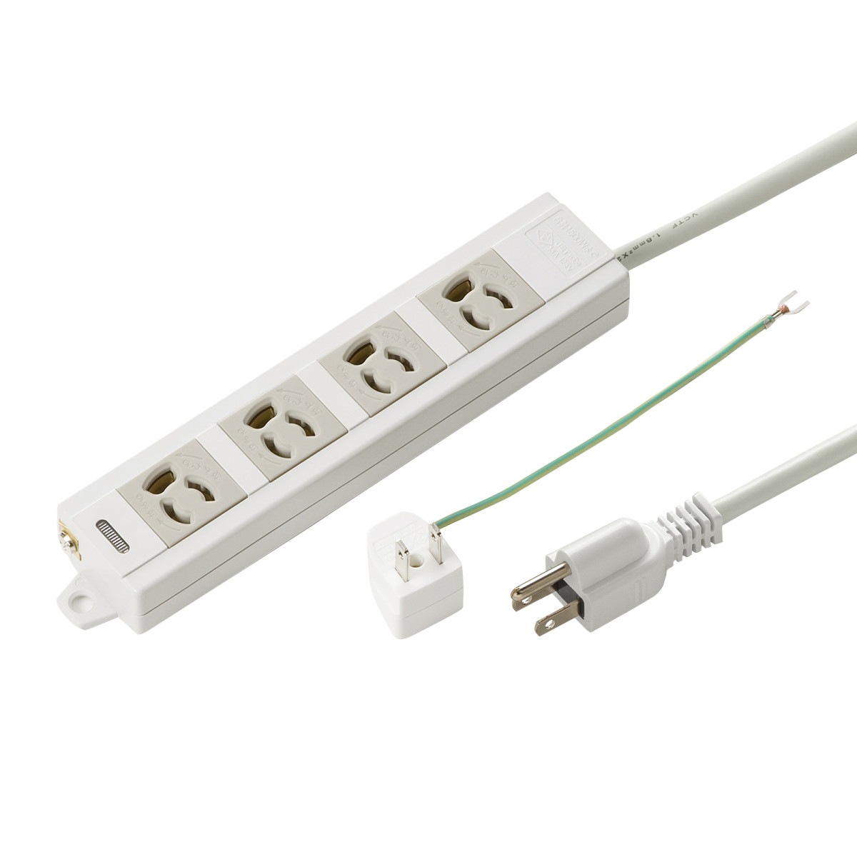 [TAP-KE4L-1] 工事物件タップ(3P4個口・1m・L型プラグ・抜け止め・マグネット付き)