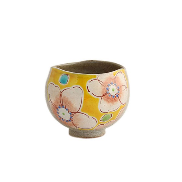 虚空蔵窯 いっぷく碗・小/花うらら(イエロー) 九谷焼
