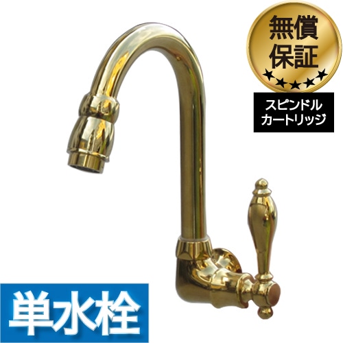 洗面水栓 蛇口 水栓金具 単水栓 シングルレバーハンドル(スパウト可動式) ゴールド(金) 奥行22×吐水口高23cm INK-0...