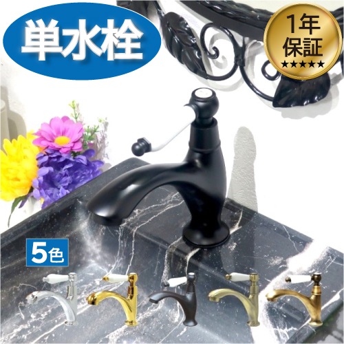 洗面水栓 蛇口 水栓金具 単水栓 シングルレバーハンドル 陶器 ブラック(黒) 奥行15×吐水口高9cm INK-0302062H...