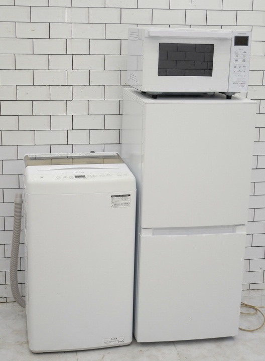 87L、5Kg/24年、23年、24年/Hisense、ヤマダ、アイリスオーヤマ製/(冷蔵庫、洗濯機、電子レンジ)中古家電3点セッ...