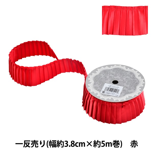 フリルリボンテープ 『プリーツフリルリボン 3.8cm幅×約5m 一反売り 赤 W57700』