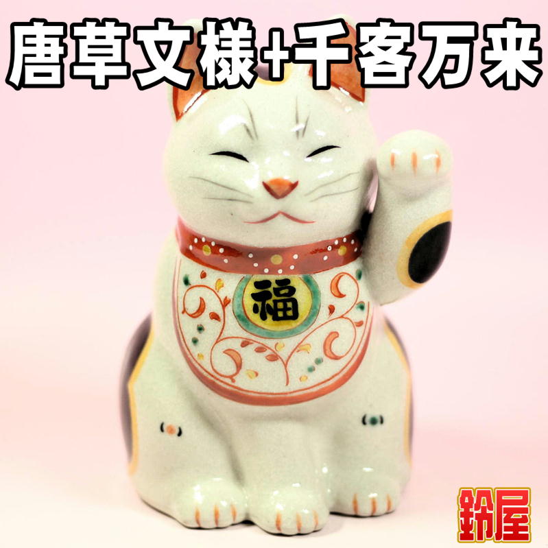 白色の唐草文様招き猫|千客万来の招き猫の置物を販売