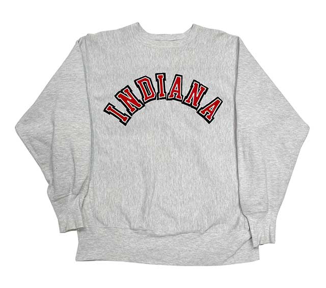 90\'s CHAMPION チャンピオン REVERSE WEAVE 立体2色パッチプリント INDIANA HEATHER G...