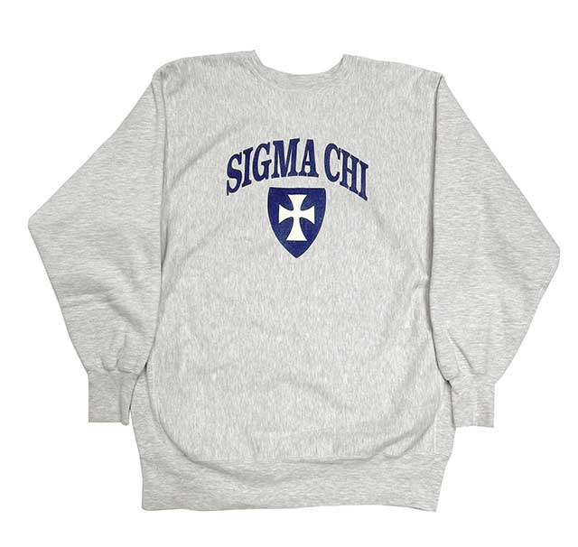 90\'s CHAMPION チャンピオン REVERSE WEAVE 染み込みプリント SIGMA CHI HEATHER GR...