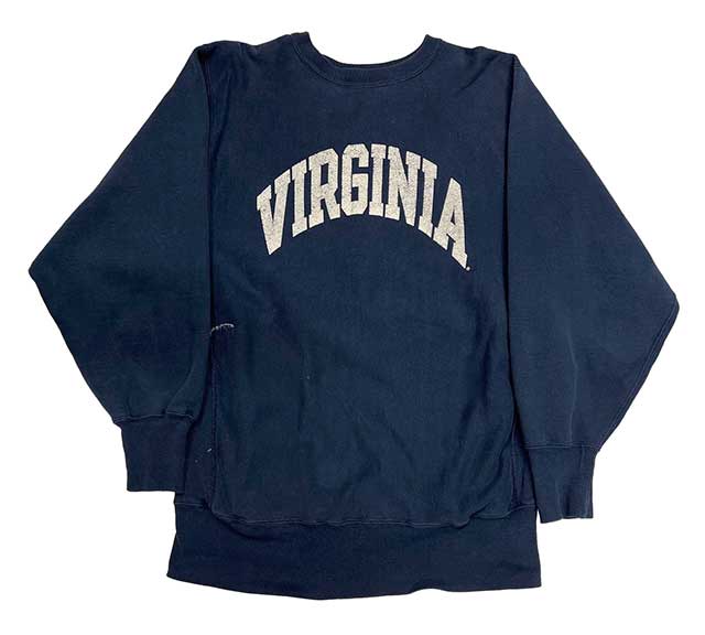 90\'s CHAMPION チャンピオン REVERSE WEAVE ひび割れプリント VIRGINIA NAVY 刺繍タグ s...