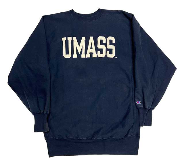 90\'s CHAMPION チャンピオン REVERSE WEAVE ひび割れプリント UMASS NAVY 刺繍タグ size...