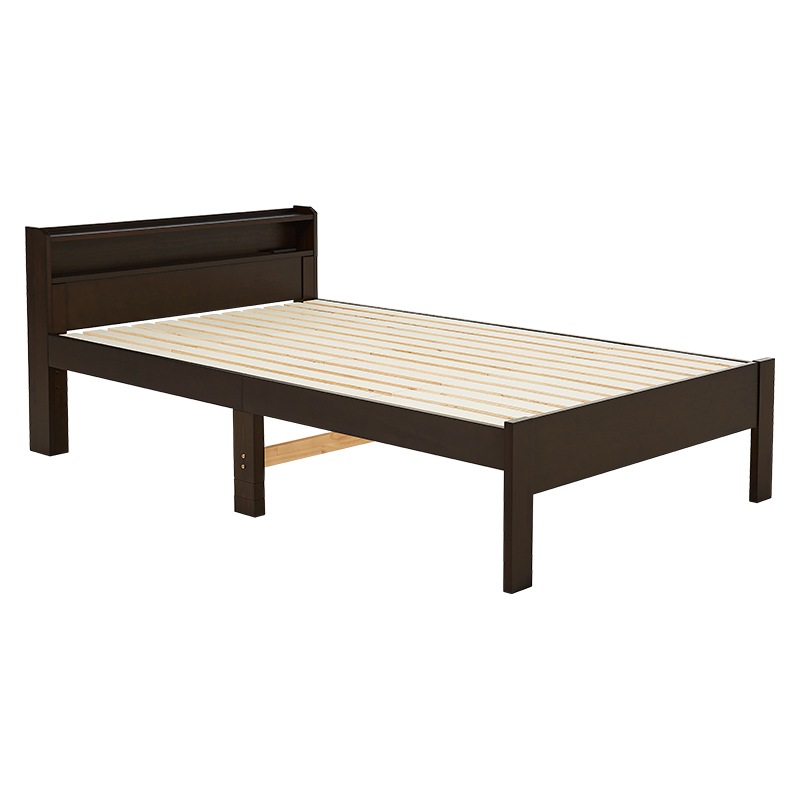 ウォールナット セミダブルベッド ウォルテ ブラウン 棚付き【携帯電話などの充電に便利なコンセント付き】 【引出し無し】
