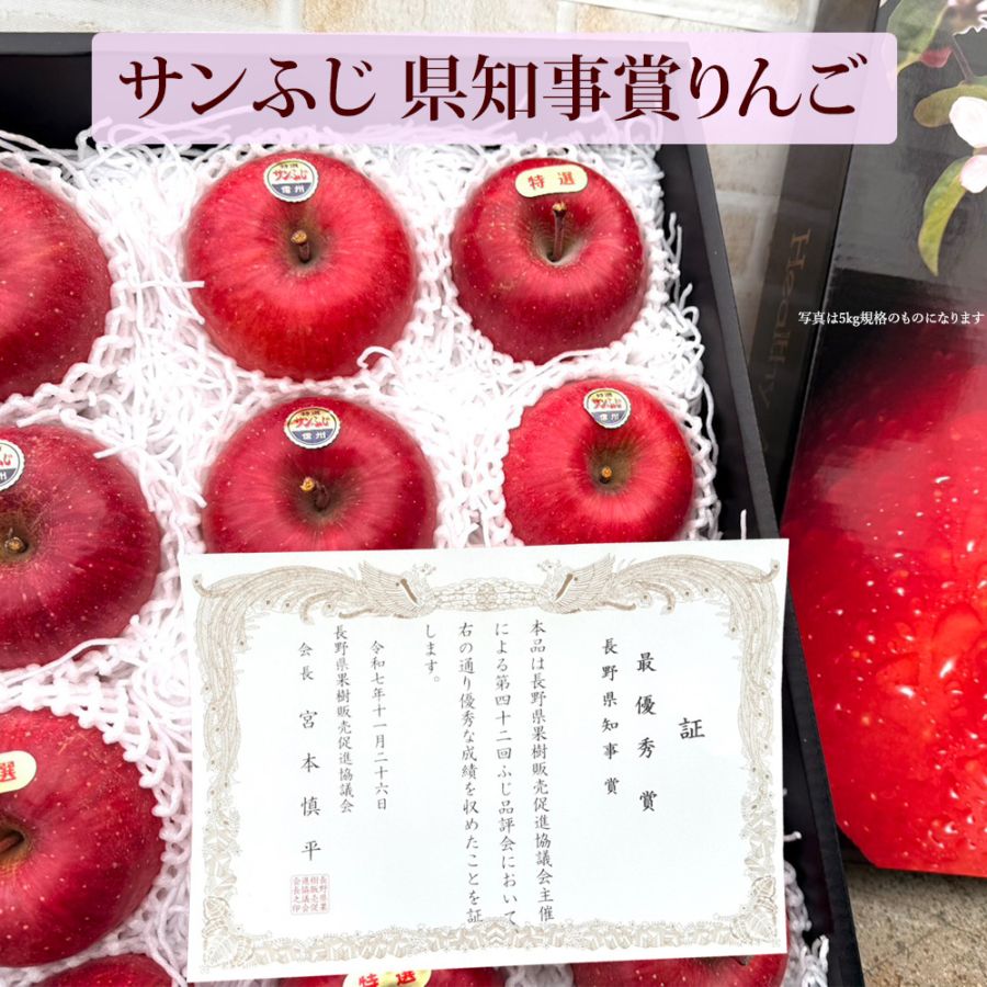 サンふじ 2025年 県知事賞リンゴ 3キロ 8-9玉 お歳暮 ギフト