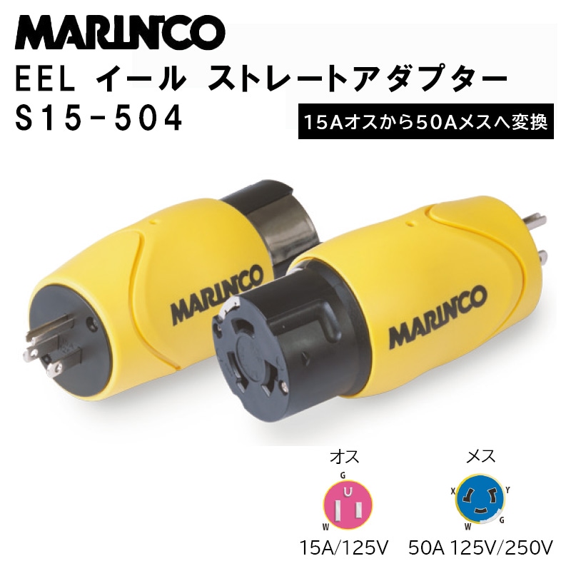 <取り寄せ>MARINCO マリンコ EEL イール ストレートアダプター 15Aストレート雄→15Aロック雌 / S15-504...