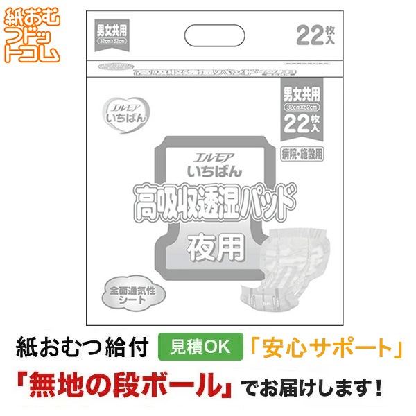エルモアいちばん 高吸収透湿パッド 病院・施設用 男女共用 22枚入 大人用紙おむつ