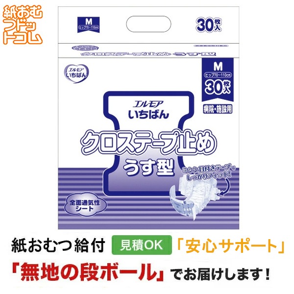 エルモアいちばん クロステープ止めうす型 Mサイズ 30枚 大人用紙おむつ