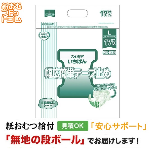 エルモアいちばん 幅広簡単テープ止め 病院・施設用 Lサイズ 17枚入 大人用紙おむつ