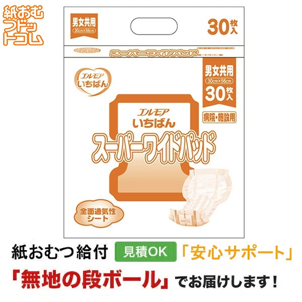 エルモアいちばん スーパーワイドパッド 病院・施設用 男女共用 30枚入 大人用紙おむつ