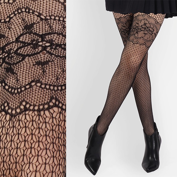 NEW・新作 イタリア インポート ブランド 柄タイツ BC DONNA VERONICA マイクロネット花柄タイツ 黒