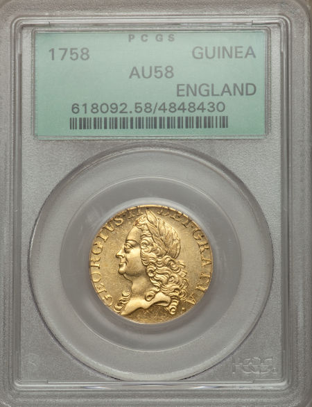 【動画あり】グレートブリテン1ギニー金貨George II gold Guinea 1758 AU58 PCGS
