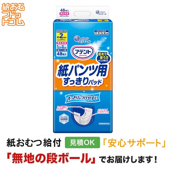 アテント 紙パンツ用尿取りパッドぴったり超安心 2回吸収 48枚入 大人用紙おむつ パンツ用パッド
