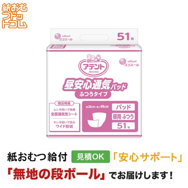 アテント 昼安心通気パッド ふつうタイプ 病院・施設用 51枚入 大人用紙おむつ 尿取りパッド