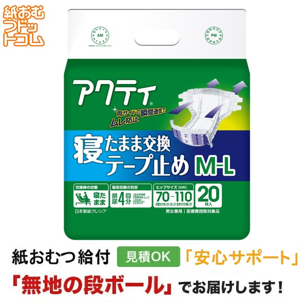 アクティ 寝たまま交換テープ止め M-Lサイズ 20枚 大人用紙おむつ テープ止めタイプ