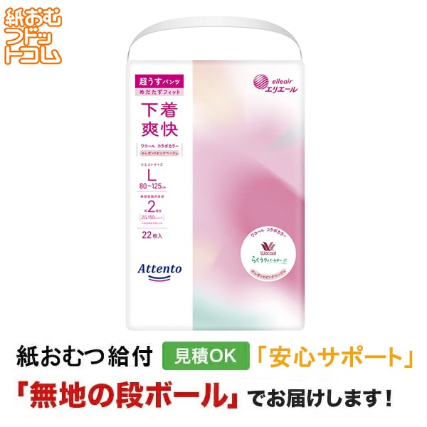 アテント うす型パンツ下着気分シンプルピンクベージュL 22枚 大人用紙おむつ