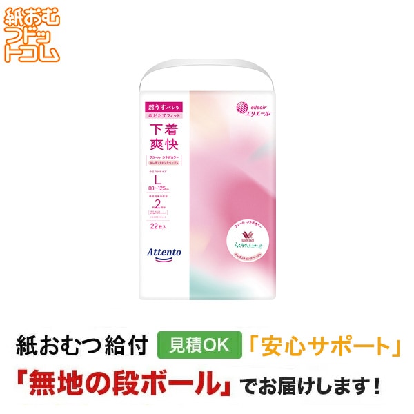 アテント うす型パンツ下着気分シンプルホワイト L 22枚 大人用紙おむつ