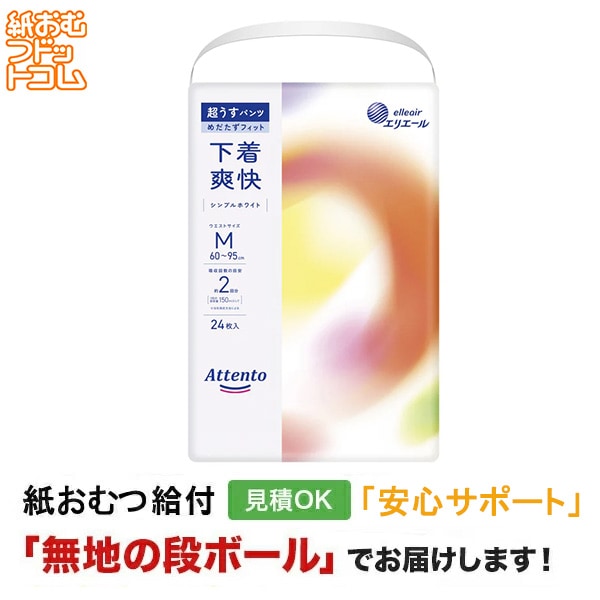 アテント うす型パンツ下着爽快シンプルホワイトM 24枚 大人用紙おむつ