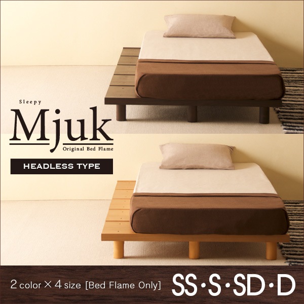 木製ベッドフレーム「Mjuk(ミューク)【ヘッドレスタイプ】【ベッドフレームのみ】」 すのこ ウォールナット 天然木 ダブルベッド...