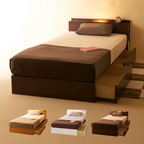 「木製 収納付きベッド Symphony(シンフォニー)【ベッドフレームのみ】」 収納ベッド 引き出し 宮 コンセント ライト ...