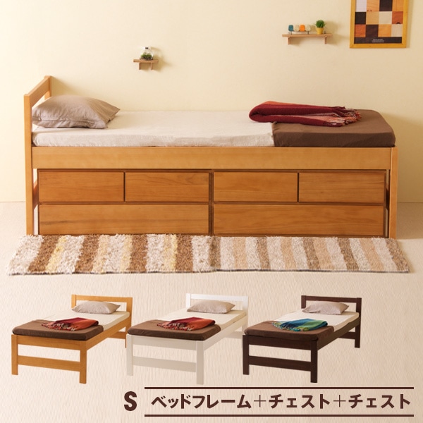 木製ベッド 「スタイル【 ハイベッド 】(S) シングル +【ベンチチェスト×2台】」 ハイベット 収納 すのこ 天然木 石崎家...