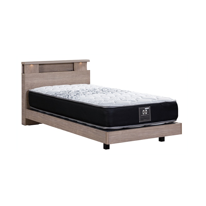 ベッド マットレス付き グレージュ ベッドフレーム ポケットコイル 国産マット付き LEDライト&棚付き&コンセント シングル ...