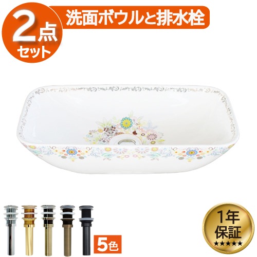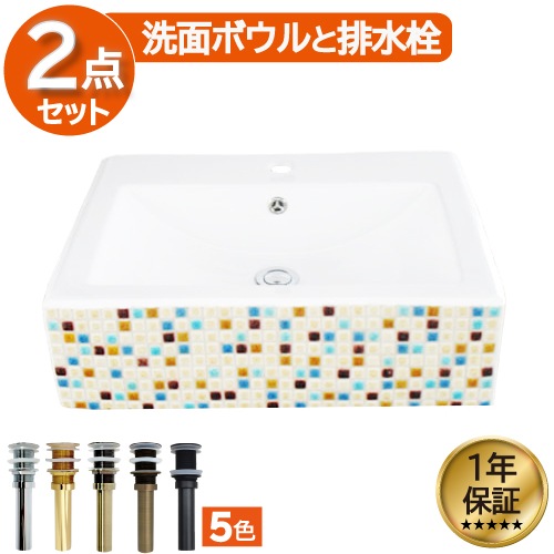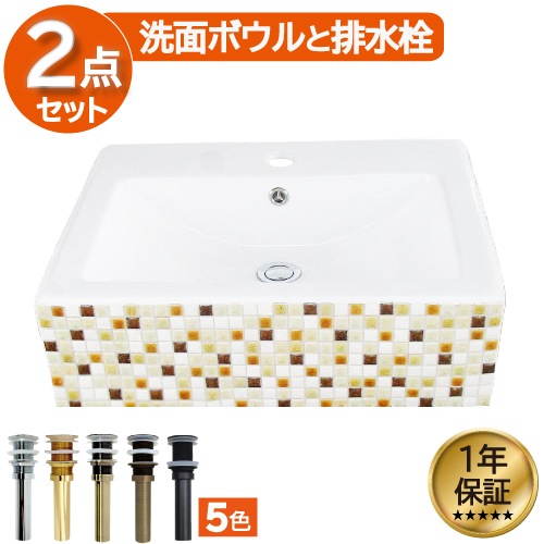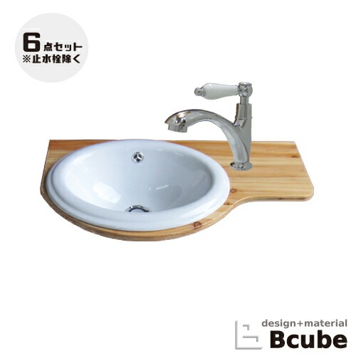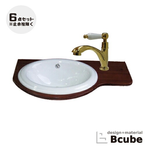 洗面台 洗面化粧台 陶器洗面ボウル 混合水栓の6点セット VIC-25 INK‐0501044Hset1