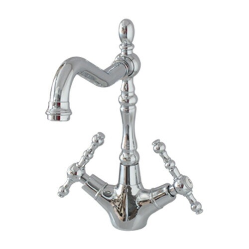 蛇口 混合水栓 スパウト可動式 2レバーハンドル シルバー(銀) 奥行21×吐水口高18.5cm INK-0303041H