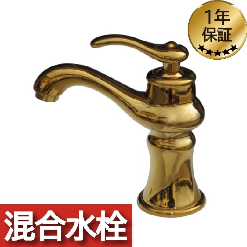 蛇口 混合水栓 シングルレバーハンドル ゴールド(金) 奥行17.5×吐水口高11cm INK-0303047H