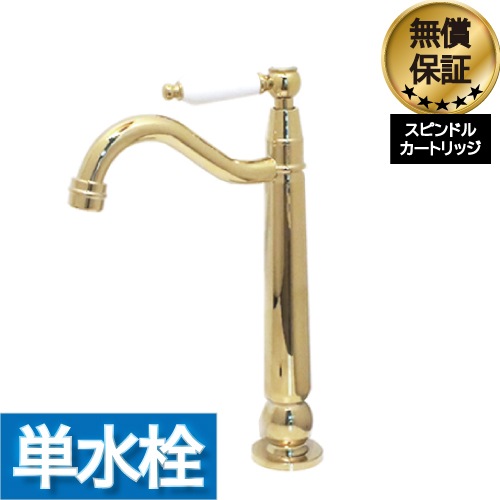 洗面水栓 蛇口 水栓金具 単水栓 レバー陶器ハンドル トールタイプ ゴールド(金) 奥行18×吐水口高22cm INK-03020...