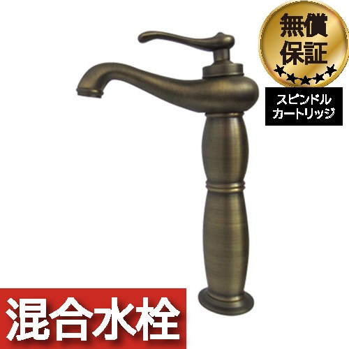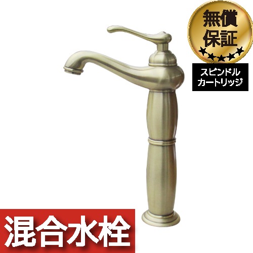 洗面 水栓 蛇口 混合水栓 レバーハンドル トールタイプ アンティークゴールド(古金) 奥行18×吐水口高23.5cm INK-0...