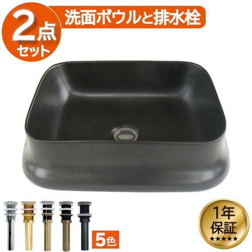 洗面ボウル おしゃれ 陶器 オンカウンター 置き型 ベッセル 四角 スクエア ブラック 幅46×奥行36×高14cm INK-04...