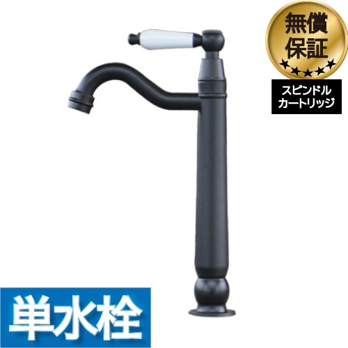 洗面水栓 蛇口 水栓金具 単水栓 レバー陶器ハンドル トールタイプ ブラック(黒) 奥行18×吐水口高22cm INK-03020...