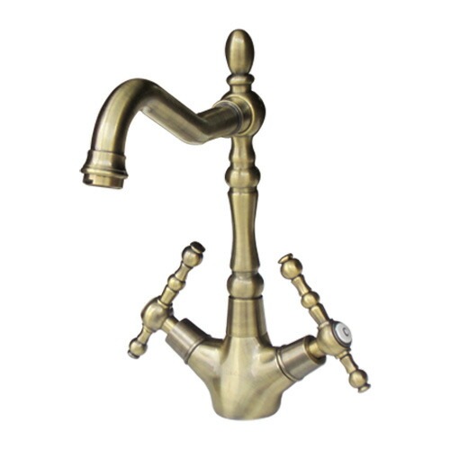 蛇口 混合水栓 スパウト可動式 2レバーハンドル アンティークゴールド(古金) 奥行21×吐水口高18.5cm INK-03030...