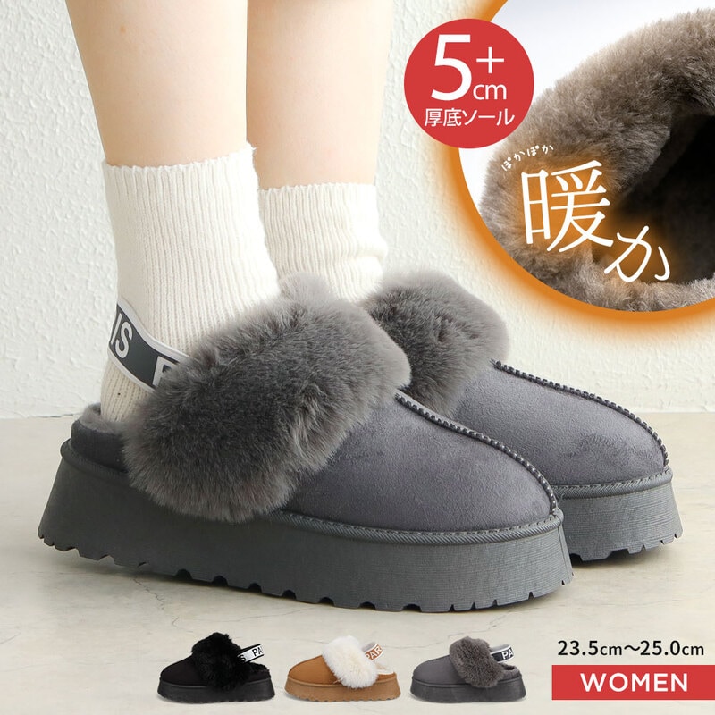 サボサンダル レディース 厚底 4cm ムートン ファー 厚底 ファー スリッポン ムートン 秋冬 ブラック 黒 グレー ブラウン...